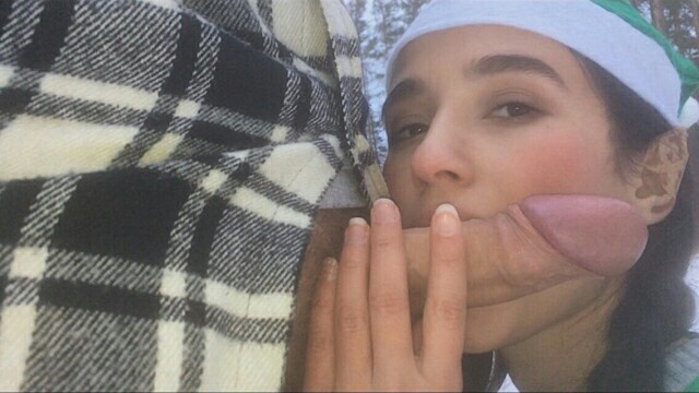 Santa's 18-year-old elf loves sucking dick. She takes it deep in her throat. After a POV blowjob, she swallows his cumshot.