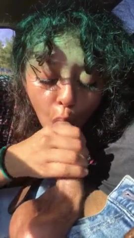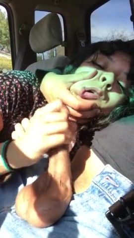 My stepmom is so horny that she blows me every morning in the car