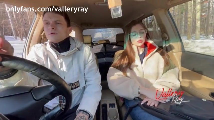 The naughty teen took her time sucking on the large shaft in the car