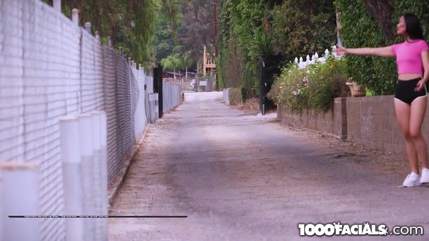 Sweet brunette cutie banging her taxi driver on the side of the road