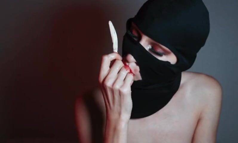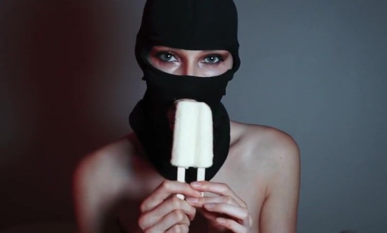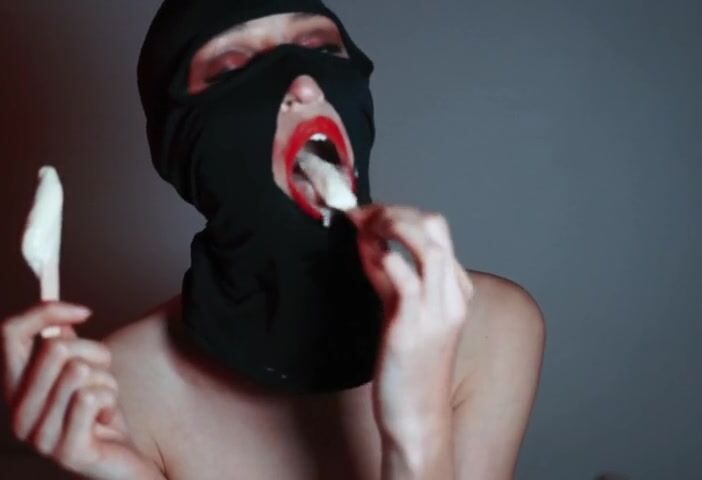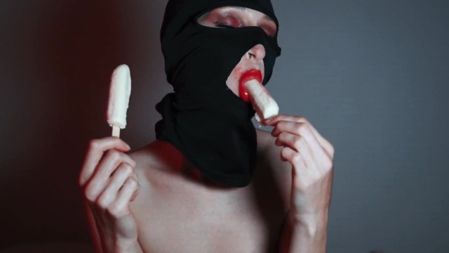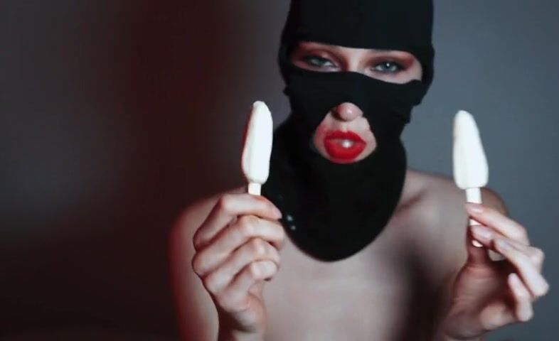 All fetish fans will love this video. A beautiful girl in a balaclava with brightly painted lips sucks ice cream like she's giving a blowjob. She likes to play with ice cream with her sensual lips, so you'll get excited quickly while watching this naughty video!
