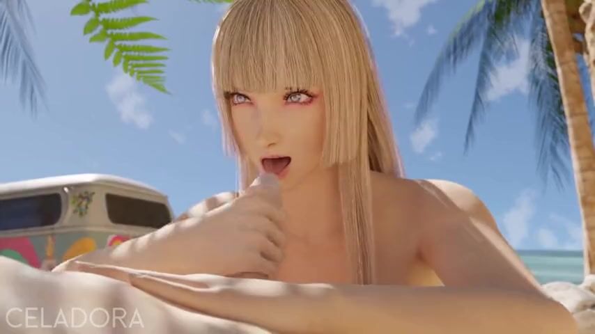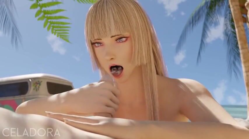 Arousing animation with a blonde doll sucking a cock at the beach