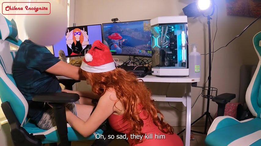 I am an avid gamer. But this time I lost my game, because my horny redhead girlfriend put on a New Year outfit and started sucking my hard cock all of a sudden. Then she started riding my dick in a cowgirl position and turned me on even more! Perhaps, such a violent orgasm was worth my loss in the game!