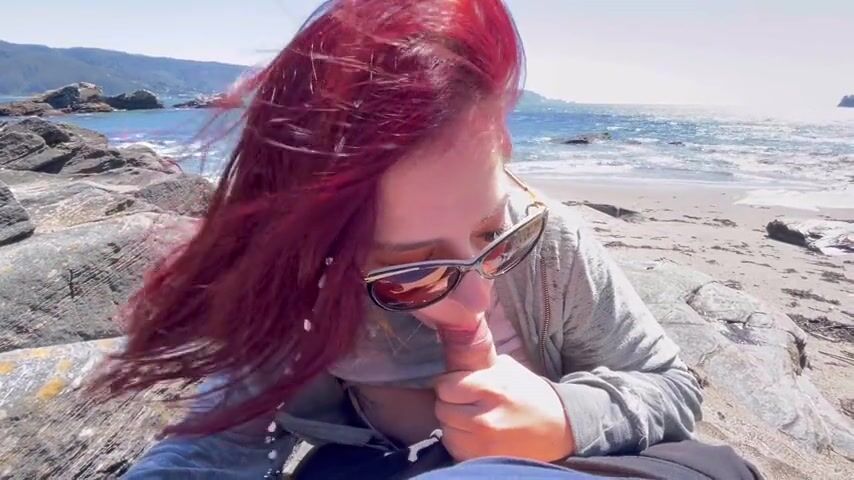 It feels so good when my redhead girlfriend sucks me off ath the beach