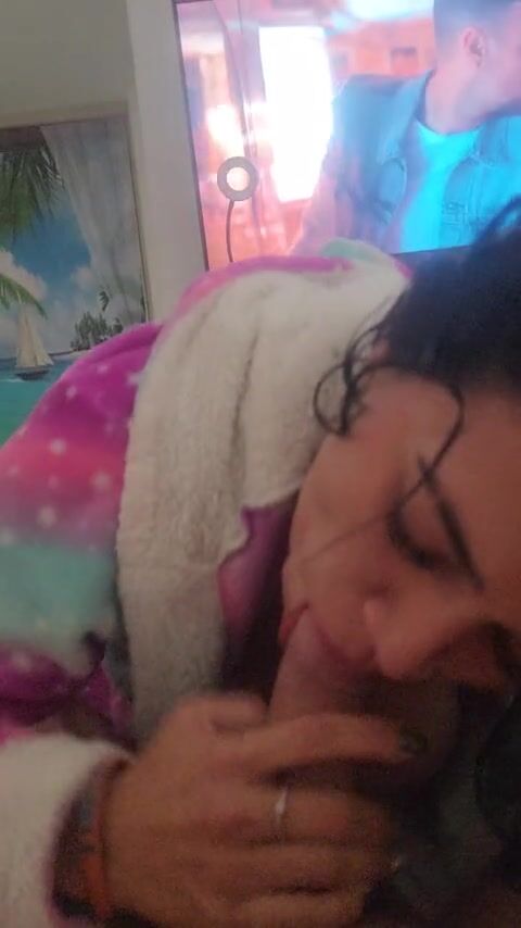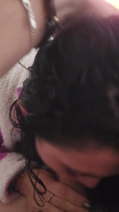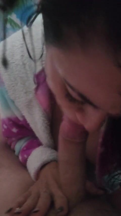 Sweet amateur latina babe looks very sexy in a bathrobe. She plays with her boyfriend's huge cock, puts it in her mouth and polishes it with her lips gently. You'll be thrilled!