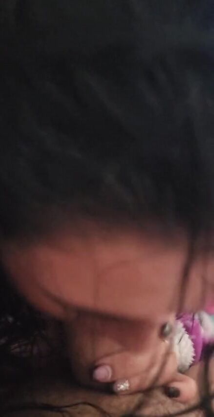 Sweet amateur latina babe is sucking a giant cock like a real whore