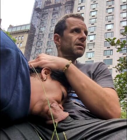 Public deepthroat and gagging with slutty brunette in Central Park NYC