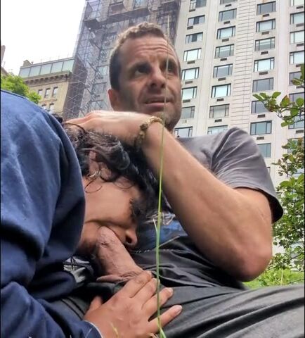 Voluptuous brunette entertains her boyfriend in Central Park NYC. She shows him her sucking skills and gives him a deepthroat with all possible passion. This slut sucks a huge dick and chokes on it, while the guy takes a video of their hot blowjob!