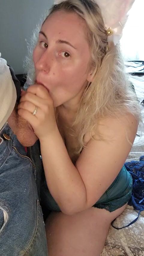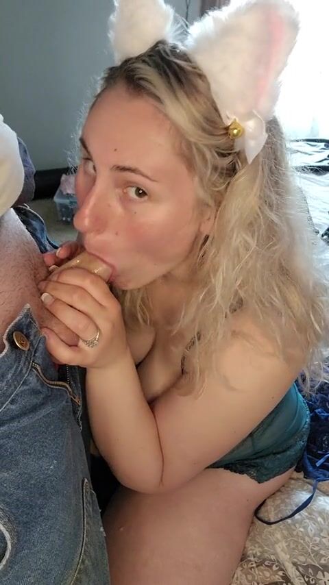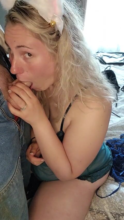 Sexy Wife in Cat Ears Gives Blowjob