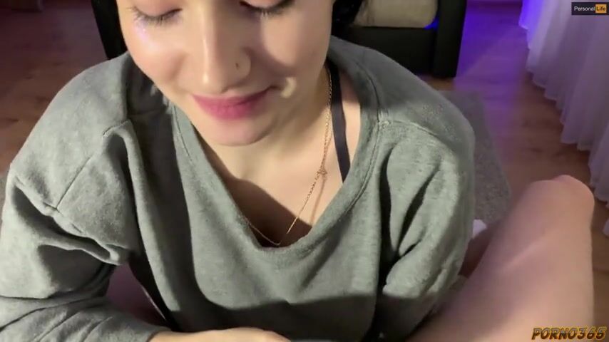 She juggles a blowjob and a call from her husband