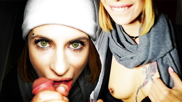 Redhead hottie with hat grabs my cock and sucks it perfectly