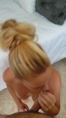 A stunning blonde MILF with big tits takes you on an intimate POV journey. She skillfully pleases you with her mouth. Your climax ends with her pretty face covered in your cum.