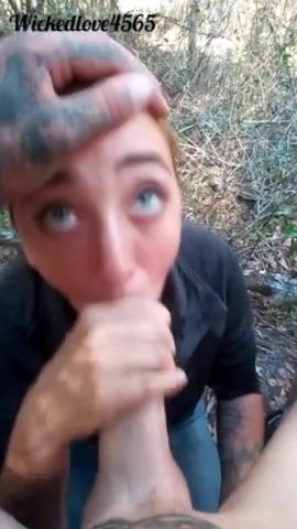 18 year old blonde Iris Rose strips to her shorts and shows cock sucking skills